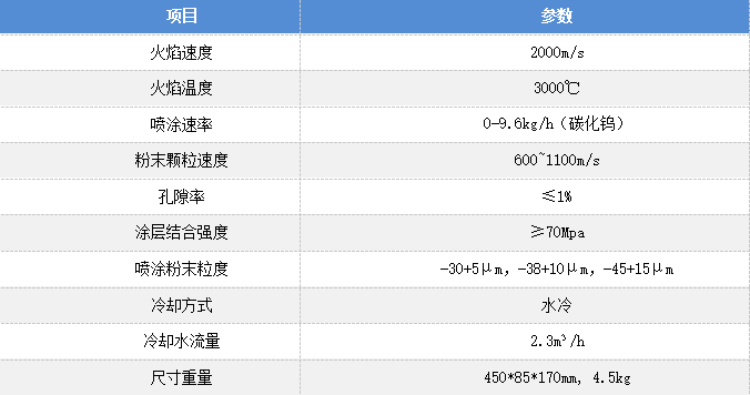 2) 噴槍結構依據火箭發電機原理(lǐ)設計,燃燒室(shì)壓力高(gāo)達150PSI,焰流(liú)速度達到2000m/s以上(shàng),輸出功(gōng)率大且可無級調節;