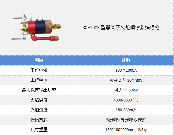 4) 係統可采用進口款的9MB、SG-100、F4型三(sān)種噴槍,可噴(pēn)塗幾乎所有熱噴塗粉末,使用領域寬。